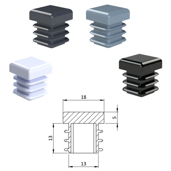 ZK18x18 Plastové zátky štvorcové, materiál polyetylén - Antracit, Biela, Čierna, ŠedáSkladom0,10 €/ ks0,08 € bez DPH