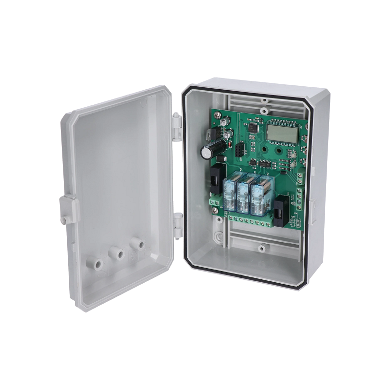 Riadiaca jednotka pre 2 semafory s 2 alebo 3 svetlami. Riadiaca jednotka je navrhnutá na striedavé riadenie jednosmerných ciest v bytovom dome (napr. rampa), alebo na parkovisku. Umožňuje regulovať 12-24 alebo 230 V AC / DC svetlá bez rozdielu.