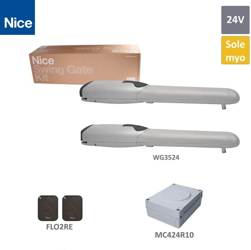 Predstavujeme vám kompletné pohonový set s dvomi pohonmi NICE WINGO - 3524 určený pre automatizáciu 2-krídlovej brány. Set je dodávaný vrátane originálneho príslušenstva od renovovaného výrobcu kvalitnej bránovej automatizačnej techniky, Talianskej firmy NICE. Vhodná pre brány kde je os pántov krídla umiestnená maximálne do 250 mm od vnútornej osi stĺpika ideálne 180 mm (pozri graf, parameter C). Tento špičkový pohon je vhodný pre automatizáciu 2 - krídlových privátnych a priemyselných brán o šírke jedného Krídla do 3,5 m, maximálnej váhy jedného krídla 500kg maximálna šírka prejazdu do 7 metrov. Súčasťou pohonov je riadiace jednotka, s rádiovým prijímačom. Motor brány sa vyznačuje dlhou životnosťou a nenáročným zapojením. Patentované usporiadanie vnútorných komponentov znamená lepšiu spoľahlivosť a tichý chod. Ľahká Inštalácia - po namontovaní pohonov sa všetky elektrické spojenia nastavujú zhora. Pohon možno v núdzi ľahko odblokovať kľúčom alebo štandardným zámkom (voliteľný). Dodávané s koncovými dorazmi PLA13 už namontovanými na spodku pohonov pre polohu - otvorené.