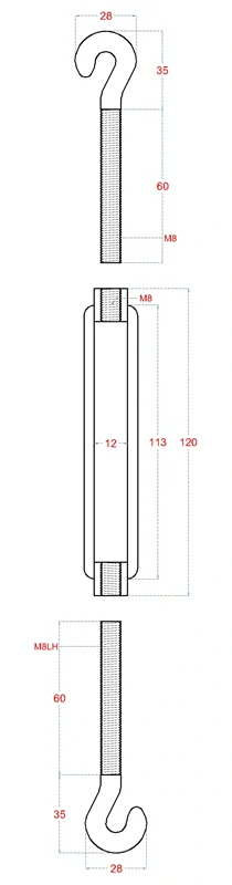 | E1-LHM8 | Brus | Nerez AISI 304 | LH8, M8 | 1480 | 0.13 kg |