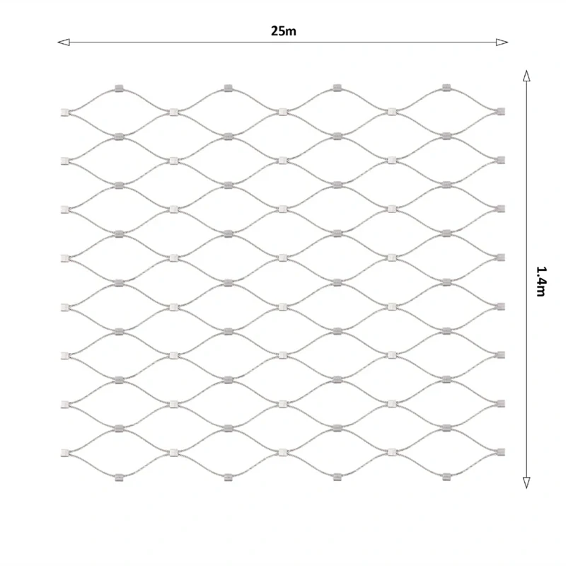 Nerezová lanková sieť, 1.4mx25m (šxd), oko 60x104mm, hrúbka lanka 2mm, AISI316 (V nerozloženom stave má sieť 29.8m)