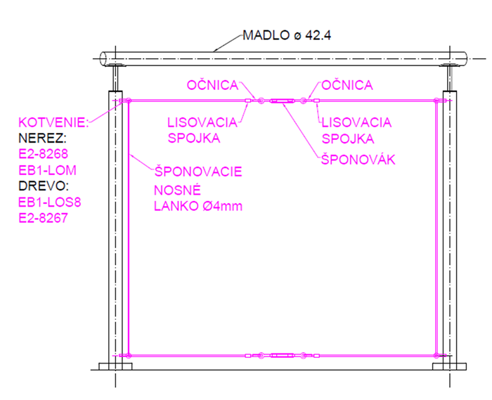 - Vytvoríme si pole požadovanej dĺžky a šírky pre napnutie nerezovej lankovej siete, následne ho pomocou šponovákou napneme.