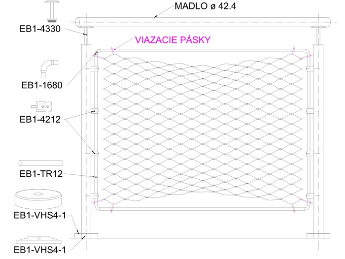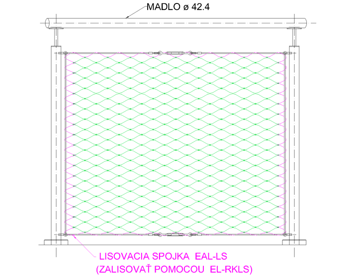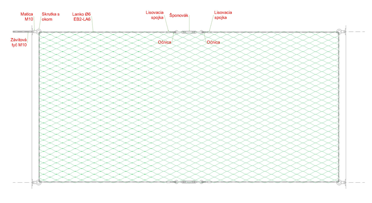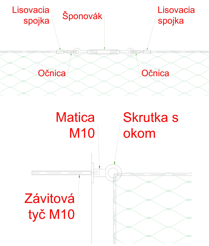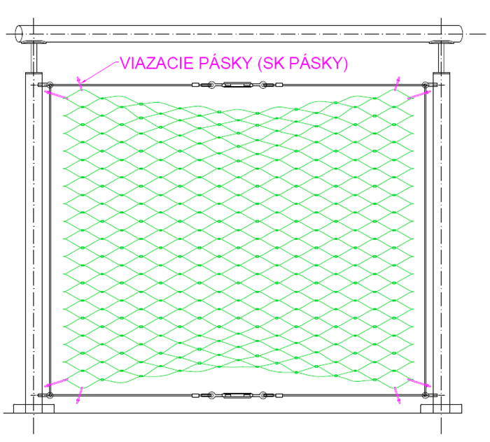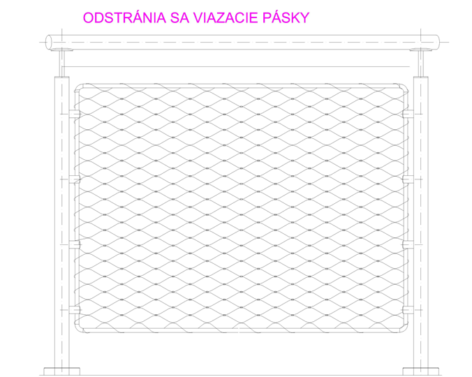 4. Upínacie lanko zalisujeme a následne odstránime SK pásky. Sieť tak ostane našponovaná: