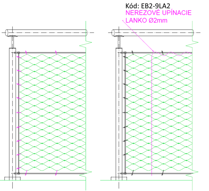EB2-0225-1.4-60x104 Lanková sieť, 1,4 x 25 m, oko 60 x 104 mm, ø 2 mm, AISI 316