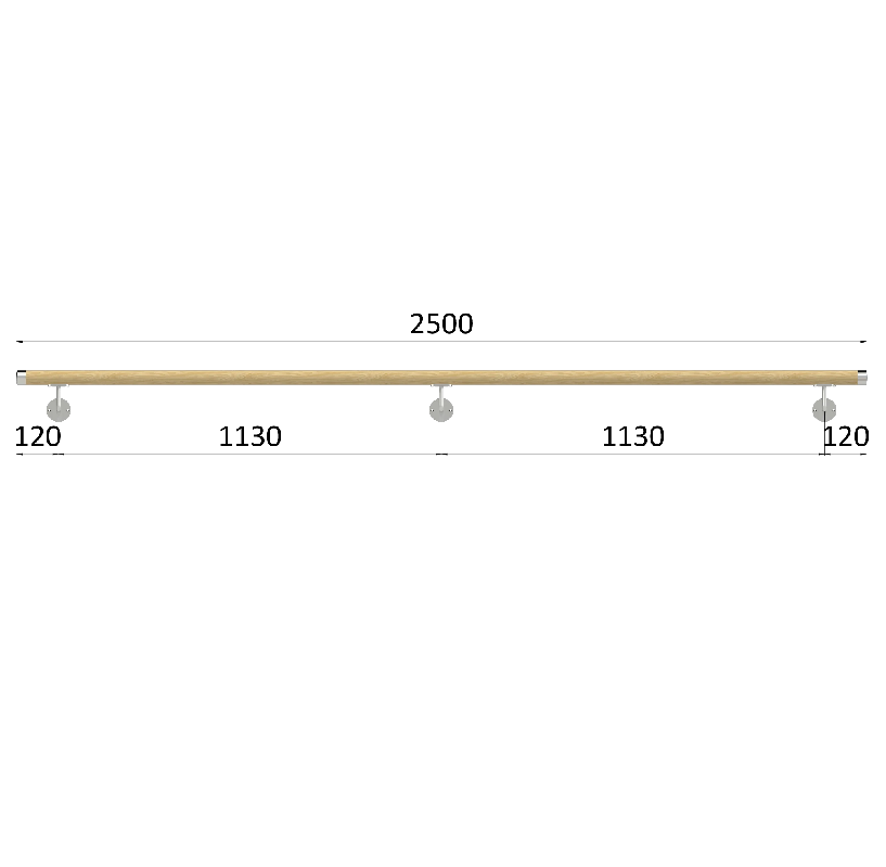EDB-M250-N - madlo drevené, materiál: buk, brúsený povrch bez náteru, madlo s nerezovým ukončením, 2500 mm