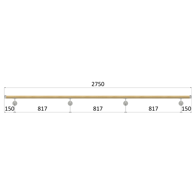 EDB-M275-DL - madlo drevené, materiál: buk, brúsený povrch s náterom BORI (bezfarebný), madlo s dreveným ukončením, 2750 mm