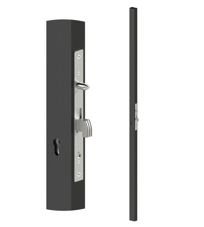 Profil 60 x 40 x 1,5 mm, výška 2000 mm, so zapusteným zámkom vhodným pre rám posuvnej bránky. Profil je dodávaný bez povrchovej úpravy a bez vložky. Zámok je obojstranný, vhodný pre pravé aj ľavé otváranie. Kompatibilný s dorazovou lištou ZMH40L.