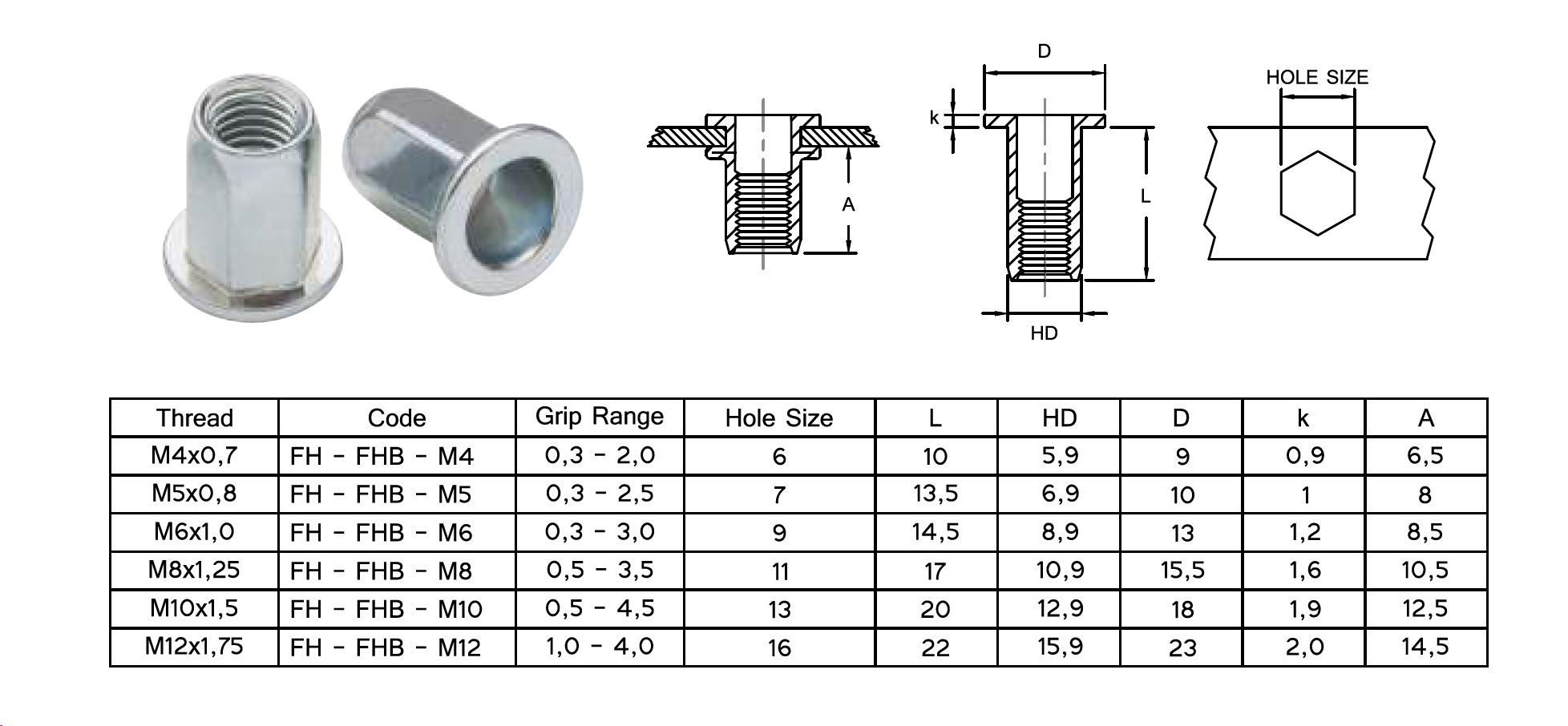 ![]() | FH-FHB-M6 | plochá | pozink | oceľ | šesťhranná | Ø13/L14.5 | M6 | 9 | voľné | 0.005 kg |