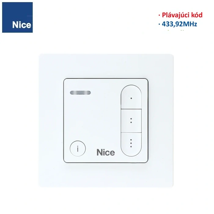 Štýlový nástupca rady NICEWAY pre ovládanie automatizácií značky Nice. Kompatibilný s väčšinou prijímačov Nice vyrábaných za posledných 20 rokov.