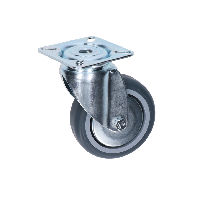 Otočné koliesko, vidlica vyrobená z oceľového výlisku - zinkovaná. Dvojitá guľôčková dráha v hlave otoče. Platnička so 4 otvormi na uchytenie kolieska. Stred kolieska vyrobený z polypropylénu, behúň kolieska z termoplatickej gumy - TENTEPRÉN. Klzné uloženie. Brzda kolesa.