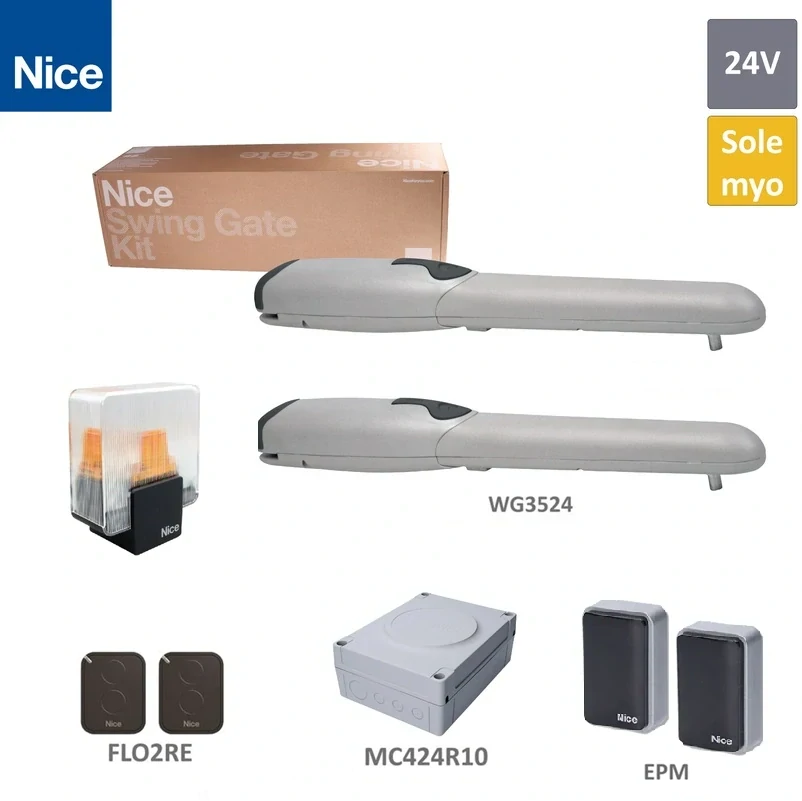 NICE WINGO 3524 KIT sada pre krídlovú bránu do 3,5m/ krídlo, 2x WG3524 (24V, 85W, 1500N), 2x FLO2RE, 1 pár BF, 1x ELDC, 1x MC424R10 (vstavaný prijímač)