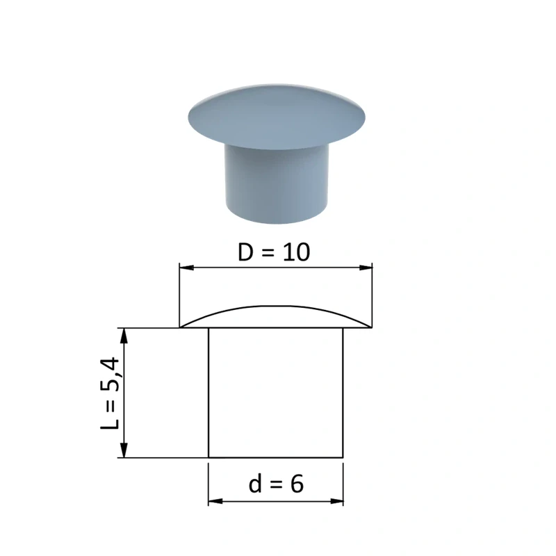 ZDO10x6 Vnútorná krytka guľatá ø 10 mm, otvor ø 6 mm, Šedá, plastSkladom0,10 €/ ks0,08 € bez DPH