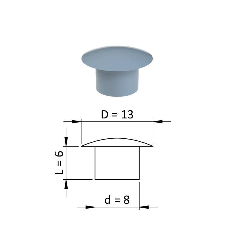 ZDO13x8GRAY Vnútorná krytka guľatá ø 13 mm, otvor ø 8 mm, sivá, plastSkladom0,10 €/ ks0,08 € bez DPH