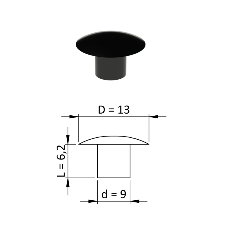 ZDO13x9BLACK Vnútorná krytka guľatá ø 13 mm, otvor ø 9 mm, čierna, plast