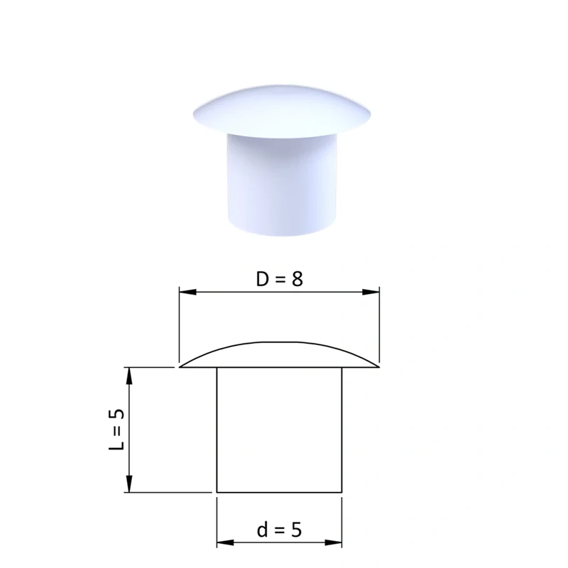 ZDO8x5WHITE Vnútorná krytka guľatá ø 8 mm, otvor ø 5 mm, biela, plastSkladom0,09 €/ ks0,07 € bez DPH