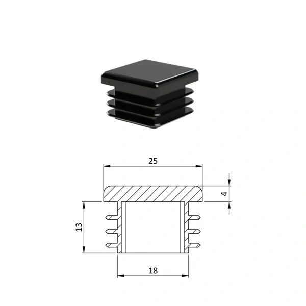 ZK25x25 Plastové zátky štvorcové, materiál polyetylén - Čierna,Skladom0,10 €/ ks0,08 € bez DPH