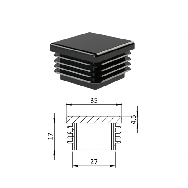 ZK35x35 Plastové zátky štvorcové, materiál polyetylén - Čierna,Skladom0,22 €/ ks0,18 € bez DPH