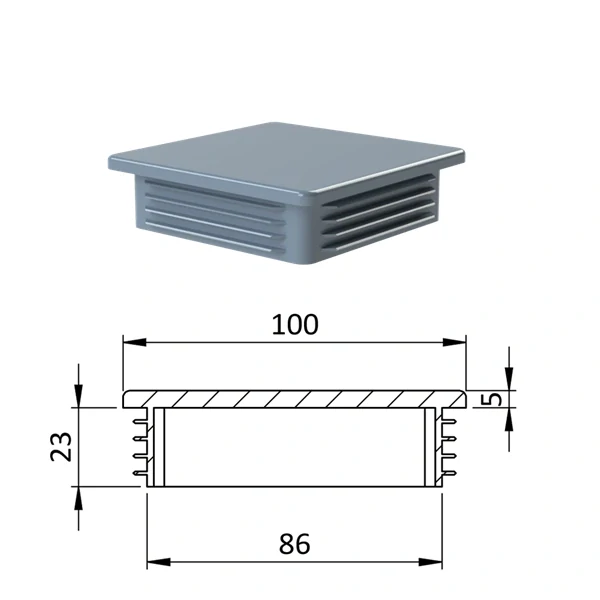 ZK100x100 Plastové zátky štvorcové, materiál polyetylén - ŠedáSkladom1,85 €/ ks1,50 € bez DPH