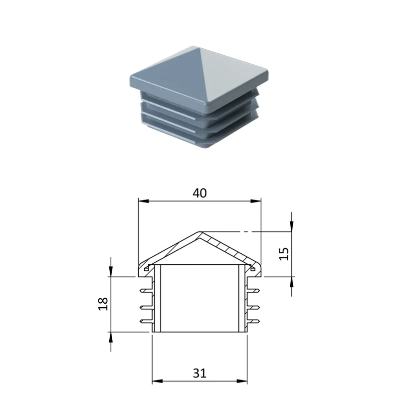 ZKK40x40GRAY Štvorcové so strieškou, materiál polyetylén, ŠedáSkladom0,31 €/ ks0,25 € bez DPH
