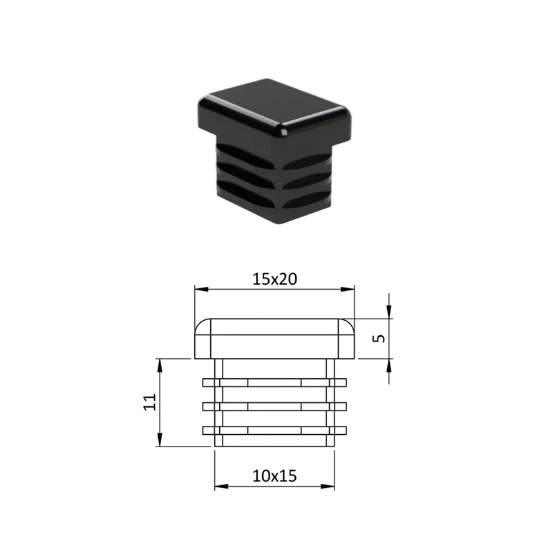 ZP15x20 Obdĺžnikové, materiál polyetylén, Čierna,